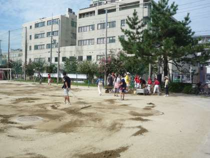 先週の土曜日はPTA主催のグリーンベルト清掃でした。お休みの日にもかかわらずたくさんの方々が参加し,学校をきれいにして下さいました。今日はPTA主催のグランドの土入れです。
