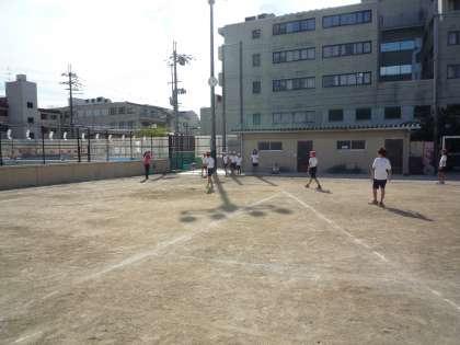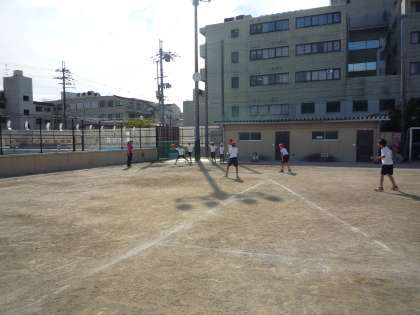 プールの近くでは,ベースボールクラブがキックベースをして楽しんでいます。