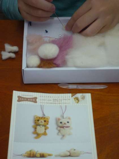みんなが思い思いに作りたいものを作製しています。マスコットを作っている子どもやティッシュケースを作っている子ども。出来上がりが楽しみです。