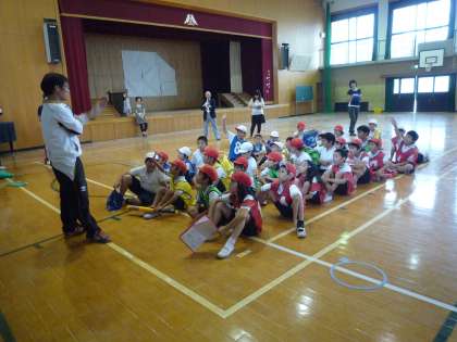 体育の学習で,ボールゲームの学習としてバックホームゲームを取り入れ学習しています。ハンドベースボールに比べると,ルールが簡単なのでボールゲームを楽しむことができます。