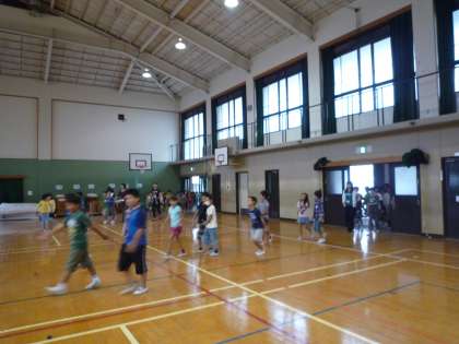 今回の避難訓練は不審者が侵入してきたということを想定して行いました。子ども達は,チャイムが2回なることや,不審者がどこにいるというかがわかる秘密の暗号を知りました。