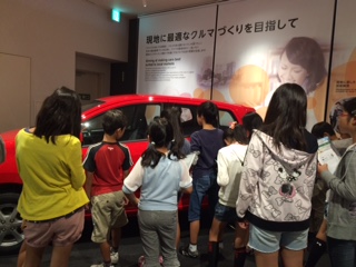 完成した車を見せていただいた後,工場見学で疑問に思ったことや学校で考えてきた質問をさせていただいています。