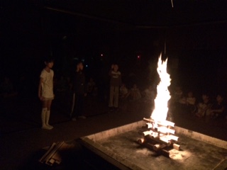 キャンプファイヤーが始まりました。レクレーション係はキャンプファイヤーに向けて休み時間も練習をしていました。