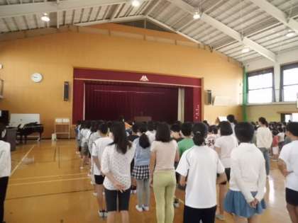 学校長より4年生の「みさきの家」の様子を含めて,前期の宿泊学習で4・5・6年生が頑張っていた様子(時間を守って行動していたこと,友達を思いやる行動がたくさん見られたこと)が紹介され,『後期は全校で友達を大切にした「優しい気持ち」があふれる学校にしていきましょう。』という話がありました。