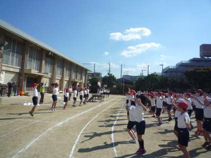 全員が入場をすると,開会式で行うリズムダンスの練習をしました。これまで,教室でも練習をしていたので,スムーズに踊ることができました。