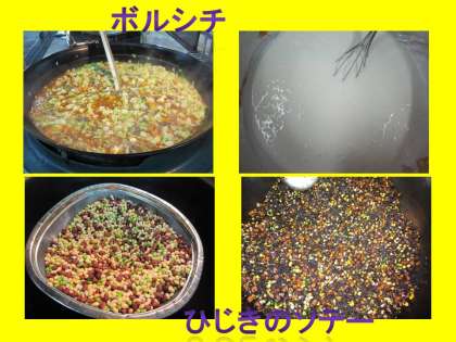10月14日の給食は「味つけコッペパン、牛乳、ボルシチ、ひじきのソテー」です。ボルシチはロシアの近くのウクライナという国の料理です。ロシアもウクライナも寒い国なので、温かい料理がよく食べられています。ボルシチもその一つです。本場のボルシチは最後にサワークリームを加えますが、給食ではヨーグルトを加えています。「ひじきのソテー」はひじき以外に、コーン、にんじん、ミックスビーンズを加えて作りました。和の食材の代表のひじきですが、給食では、洋風にも使います。ひじきをよく炒めて砂糖と醤油で少し味をつけてから、他の材料と一緒に炒めて、最後に塩・こしょうで味つけしました。「ボルシチはパンとよく合っていて、食べたらとっても元気が出ました。」「ボルシチが美味しかったです。特にスープが美味しかったです。」「ボルシチのお肉がやわらかくて、キャベツは甘かったです。ひじきのお豆がやわらかくて、美味しかったです。」・・・子どもたちの感想より。