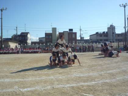 たわらの形です。音楽に合わせて,たわらができたり,くずれたりしました。