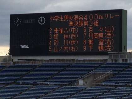 昨日,体育振興会の方々にお世話になり,6年生6名がリレーカーニバルに参加しました。予選を突破し,準決勝に進みました。残念ながら,決勝には進むことができませんでしたが,6年生の参加した子どもたちは,西京極のグランドでしっかりと走っていました。