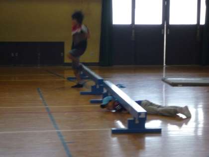 ぐるぐる回って,マットで回ってとゴールをめざして進んでいきます。最後にクイズがあり,正解できなかったら,もう一度脱出しなければなりません。