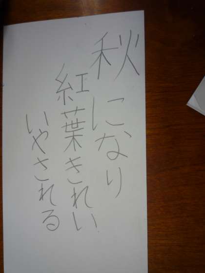 写真を見ながら秋を探しました。秋の言葉を集めました。そして,それをハイクに表し,みんなで交流をしました。