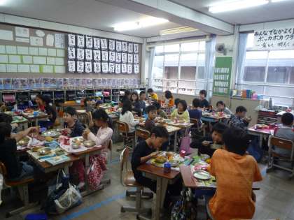 「今日の給食時間の写真はホームページに載るよ。」