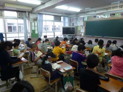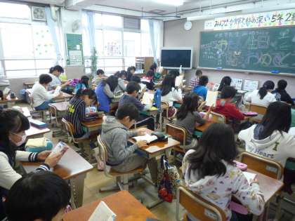そっと5年生の教室を覗いてみると,みんな静かに本を読んでいます。読書を楽しみ,一日がスタートします。