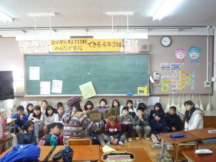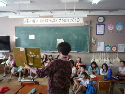 火曜日にじゃんけんほんの読み聞かせがありました。子どもたちは,教室の前に集まり,静かに本の世界に入り込んでいました。