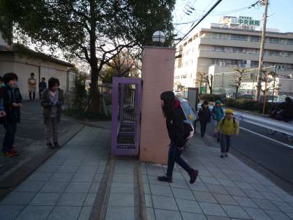 8時を過ぎると,集団登校の子ども達が登校してきます。「おはようございます」大きな声が聞こえ,多くの子どもがご褒美のぺこりんカードをもらっていました。