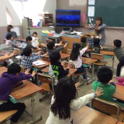 1年生では,Open Shut Themの歌に合わせて,押したり引いたり,