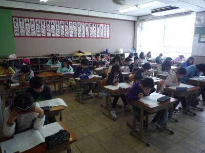 国語は,まずはじめに聞き取りのテストがあります。子ども達はメモを取りながらしっかりと聞いていました。