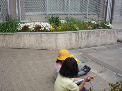 花壇で,運動場で,玄関の辺りで見つけたものをカードに記入しました。