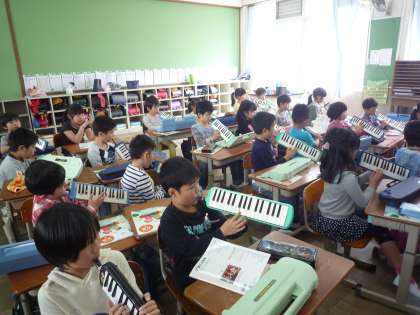 鍵盤ハーモニカの学習をしています。タンギングを上手に使って演奏しています。