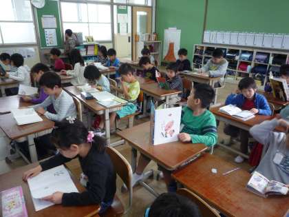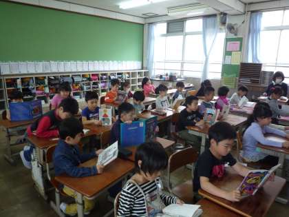 朝読書の様子です。廊下を通ると,2年生の子ども達は静かに本を読んでいました。本を読み終わると,静かに,本を交換に行きます。