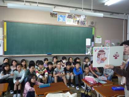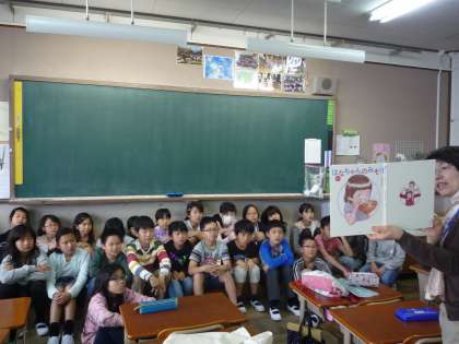 今日は6年生の子ども達にじゃんけんほんの方々が読み聞かせをしていただきました。1組は「はなちゃんのみそ汁」です。ご存知の方も多いのではないでしょうか。