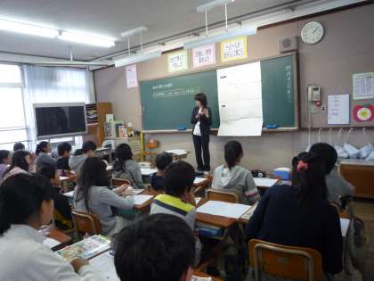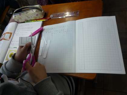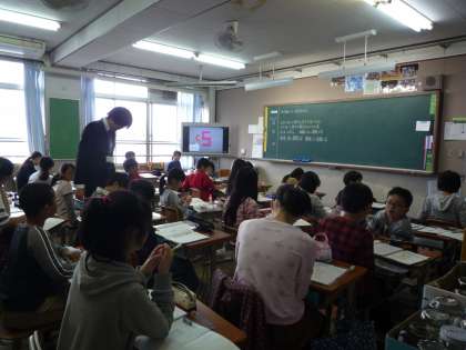 1組は算数「点対称の図形」,2組は家庭科「私の仕事と生活時間」について学習をしました。