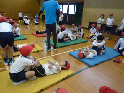 上体起こしです。4年生は学年でまわっています。