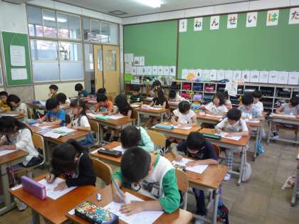 体育が終わったら国語の学習です。今日はひらがなの学習もしました。集中して学習をしています。