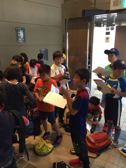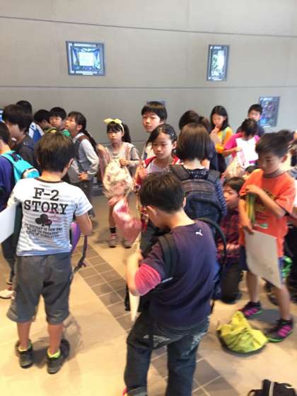 円町からバスに乗り,右京区梅ヶ畑にある北部クリーンセンターに到着しました。さっそくノートを出して見学の準備をしています。