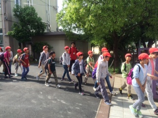 6年生は,愛宕山登山に出かけました。天候に恵まれ全員元気に出発しました。