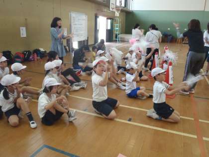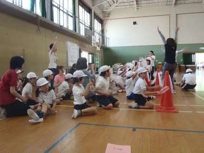 今日は中京支部の育成学級の友達が朱八校に集まり,6月17日(金)に朱八校で行われる合同運動会の練習をしました。