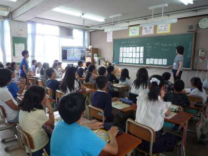 中学の先生が外国語活動の学習を参観に来られました。子ども達がクイズをしながら英語を楽しんでいる様子を見てもらいました。
