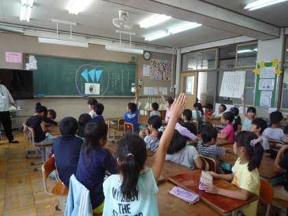 先生が「赤ちゃんって」と尋ねると「泣く」「かわいい」「ぼくんとここの前生まれた」「泣くのがしごと」等色々な意見がでてきました。