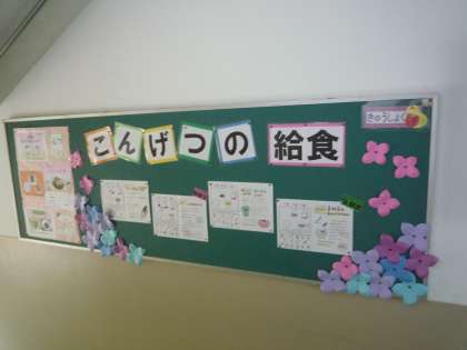 この掲示板はどこにあるでしょう。給食についてのお知らせ掲示板です。ご存知ですか。