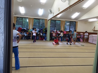 朝のつどいの後は清掃活動です。「来たときよりも美しく」を合言葉に,協力して掃除をしました。
