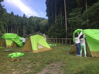 説明を聞き終わるとさあ,今度は自分たちです。場所を確認して,グループで協力をして設営を始めました。「こうやった?」「こっちが先じゃあない?」