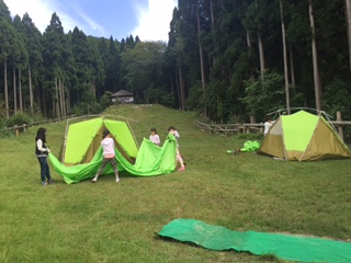 さあ,出来上がってきました。テントが出来上がると,今度はシュラフとシーツの準備もします。