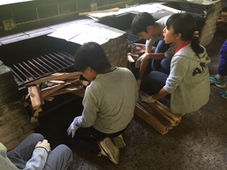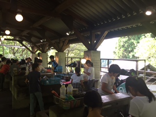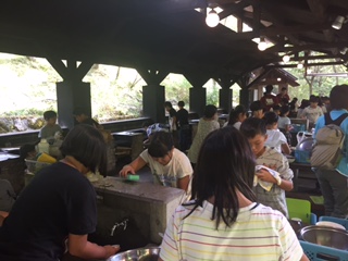 3時からは野外炊事です。火の係,おかずの係,ごはんの係に分かれています。火の係が素早く準備できました。