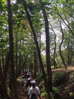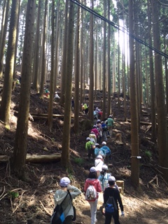 だいぶ頂上が近づいてきて,空が明るくなってきました。もうひと頑張りです。