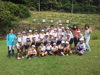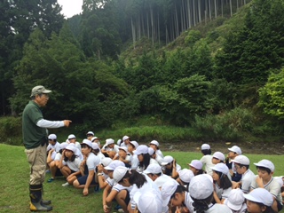 親水広場に着きました。山の家の先生からかっぱの話や諸注意を聞いてから川に入り生き物を探しました。