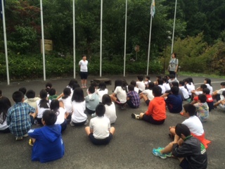 おはようございます。4日目の朝を迎えました。曇っていますが,玄関前で朝の集いを行うことができました。今日はひんやりというほどではなく,過ごしやすい気温の朝です。
