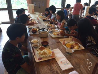 最終日の朝食の様子です。朝から掃除や荷物整理を頑張ったので,しつかりと食べられました。