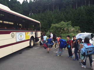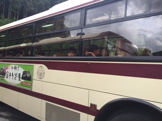 いよいよ山の家から学校へ帰ります。まだまだみんなと山の家にいたい気持ちと,早く家に帰りたい気持ちでバスに乗り込みました。