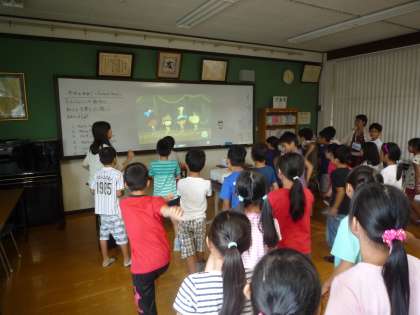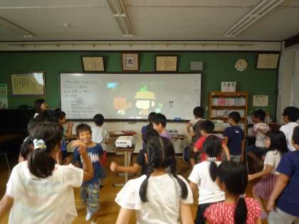 先週に続き,SEET(朱八イングリッシュタイム)が行われました。今日は,プロジェクターに映った動画を見ながら,動きもつけて英語の発音を練習しました。みんな,大きな声が出ていました。