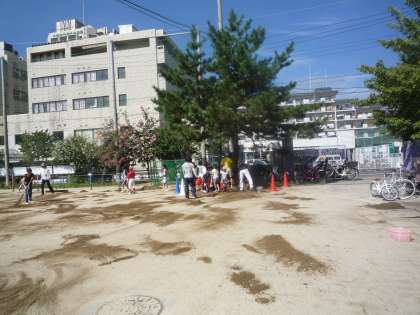 これは3年前です。運動場の土が雨で流され減ってきました。