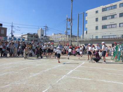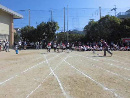 初めての運動会。50メートルを力いっぱい走りました。1年生がんばりました。