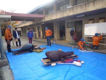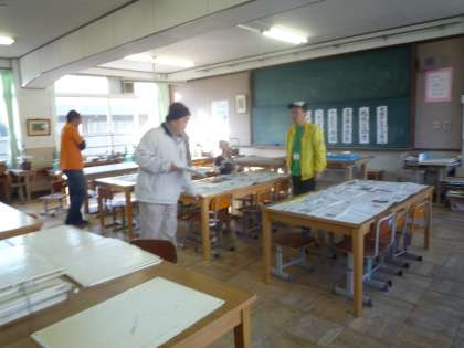 本日9時より,学校運営協議会主催の防災学習「遊びながら学ぼう」を行います。学校運営協議会の方々が8時より準備を始めてくださいました。