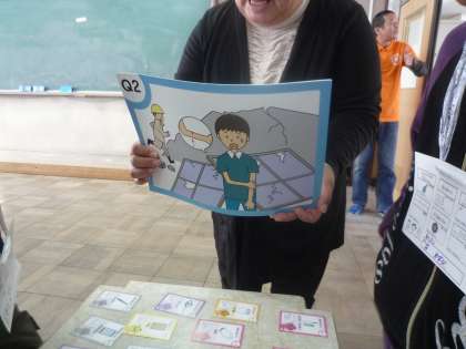「怪我をして血がでています。このカードの中でこれを使ってこのようにすると説明してください。」