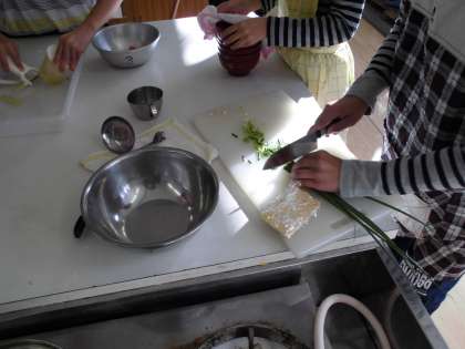 5年1組が家庭科の調理実習でお味噌汁を作りました。大根の切り方やネギの切り方を学習し,にぼしで出汁を取るところからはじめました。みんなとても楽しそうに活動していました。