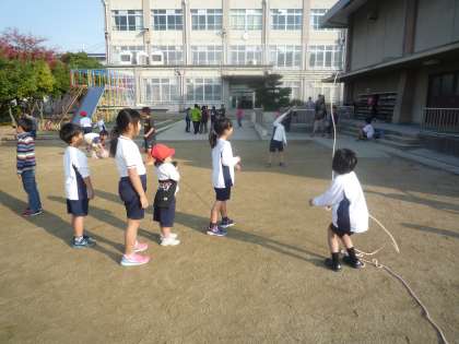 今度,運動委員会が長縄とび大会を開いてくれます。少し寒くなってくる頃です。みんなが運動場に出て,長縄とびに挑戦することは,体力づくりにも仲間づくりにもいいですね。