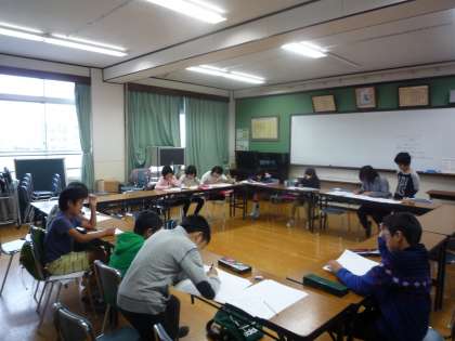 ふれあいサロンに入ると,とても静かです。子ども達はプリントを中心に自分の学習を進めています。